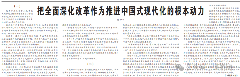 把全面深化改革作为推进中国式现代化的根本动力任仲平